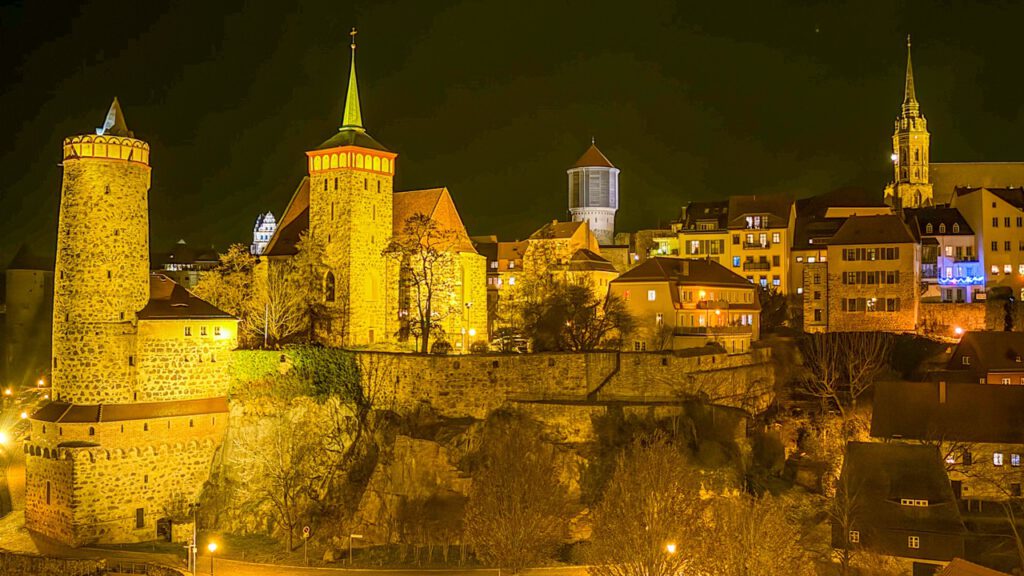 バウツェンは中世から続く城塞都市で、第二次世界大戦ではは破壊がされていないため、道がややこしかったり城壁や多くの塔が残っている。