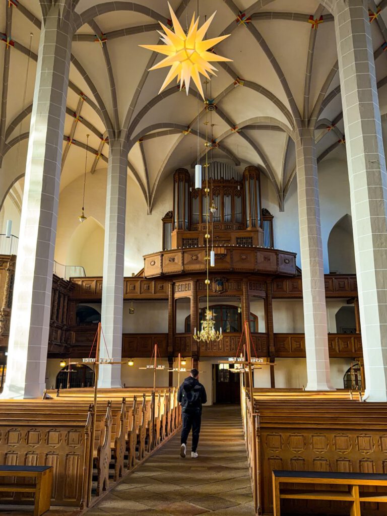 風に揺れるヘルンフートの星(キリスト降誕を告げるベツレヘムの星)がとっても豪華で感動した。