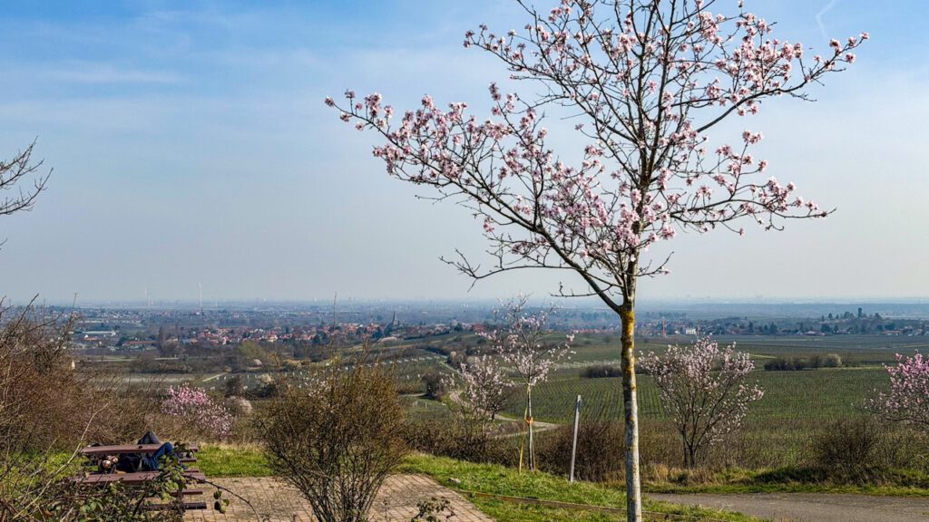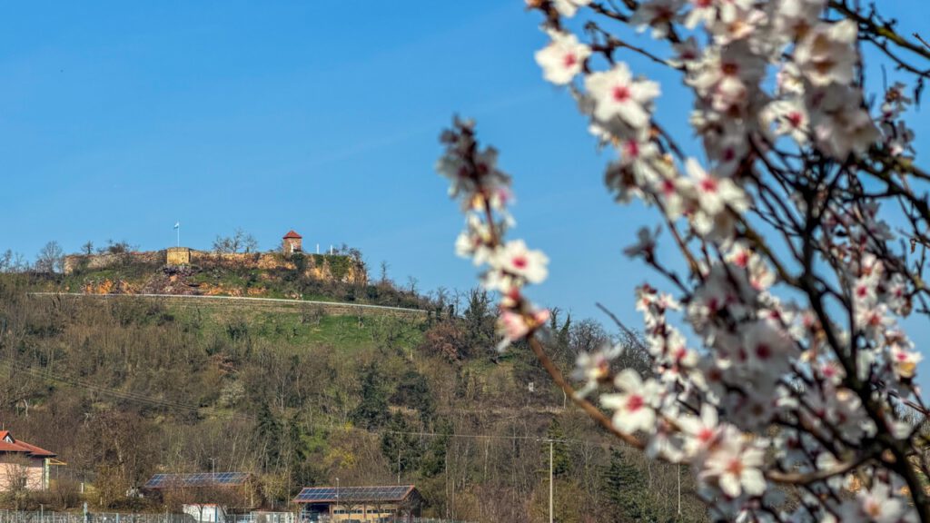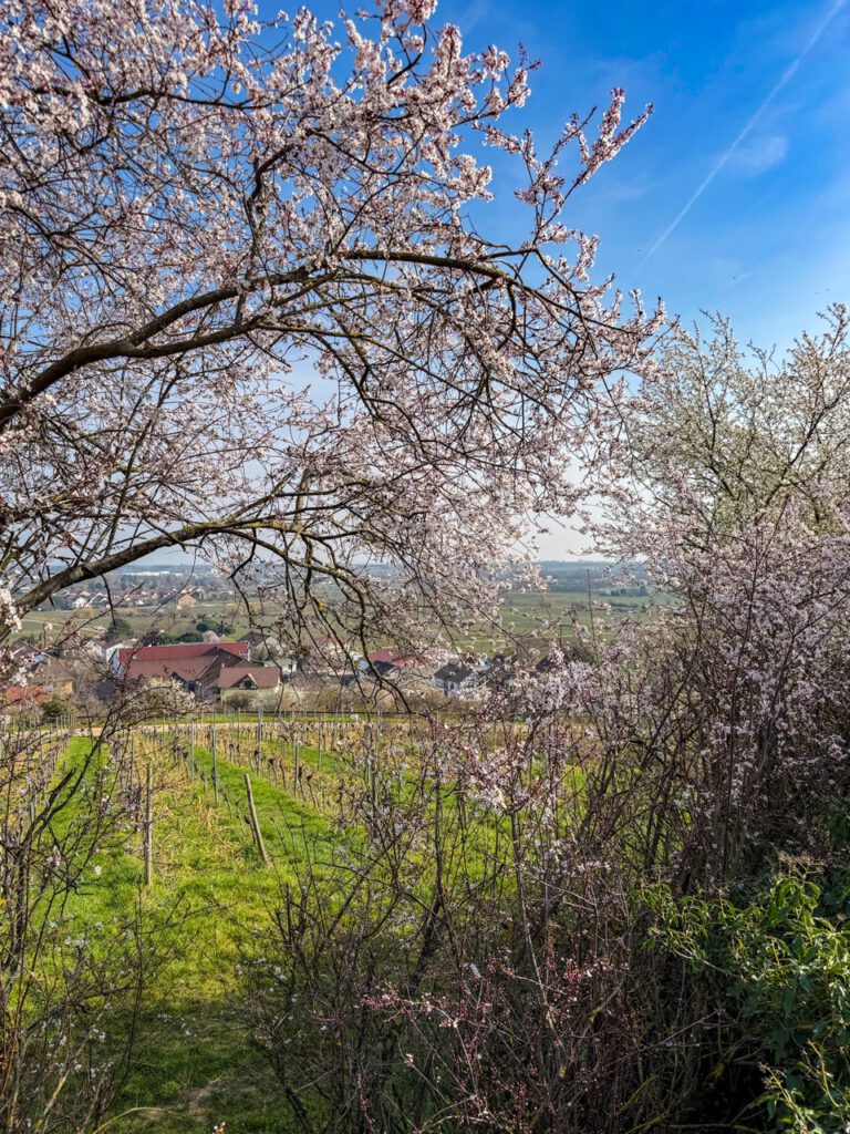 アーモンドの花はボーベンハイム・アム・ベルク(Bobenheim am Berg)の手前にたくさん咲いていて、ちょうどお城とのマッチが良かった。
