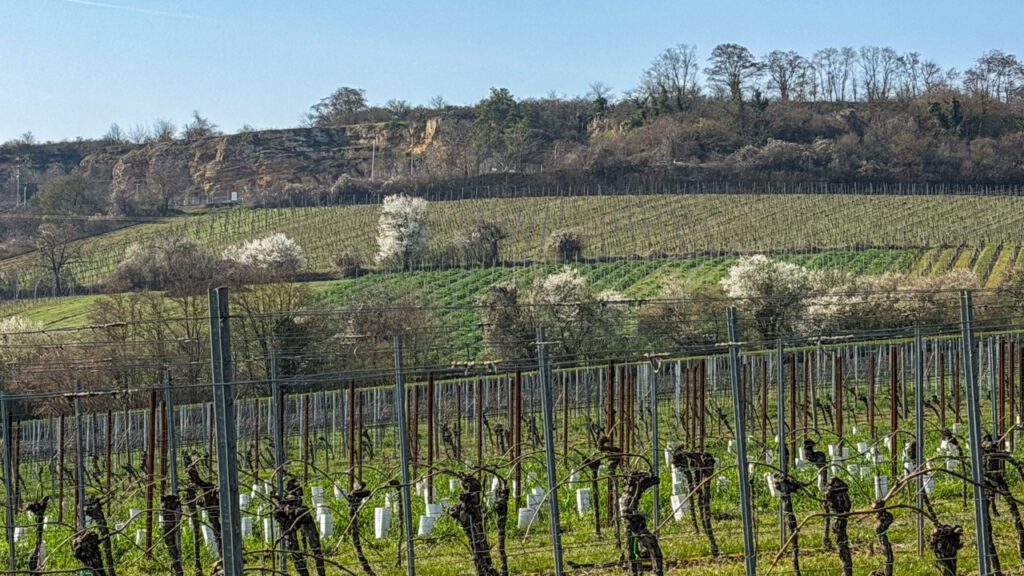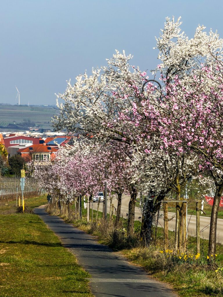 ヴァイゼンハイム・アム・ベルク (Weisenheim am Berg)に入る直前、なんとアーモンドと桜の木が交互に植えられている場所が。