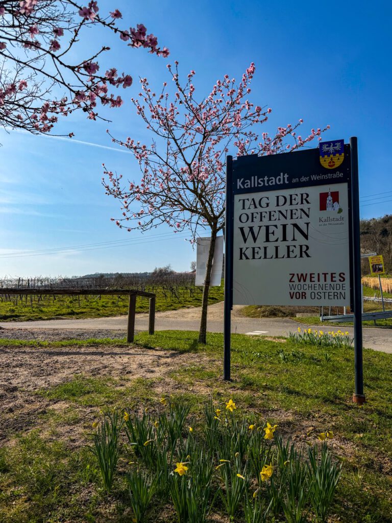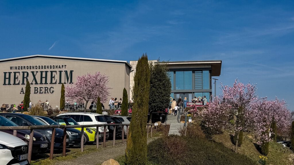 ヘルクスハイム・アム・ベルク (Herxheim am Berg)を出ようとしたところ、ものすごい豪華な桜の木がたくさん見えて、何だろうと思ったら、ワインセラーだった。